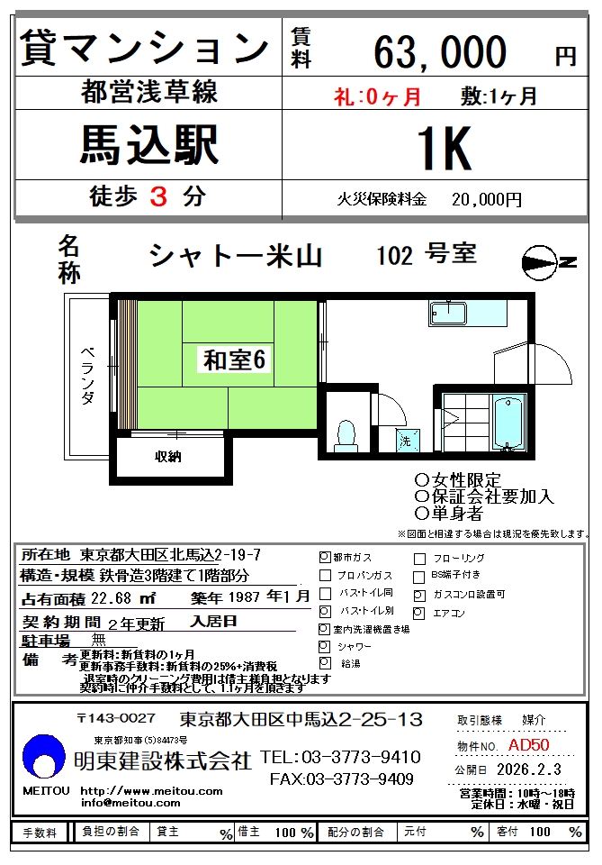 | 周辺環境6 | [郵便局] 大田東馬込郵便局まで329m | ||||