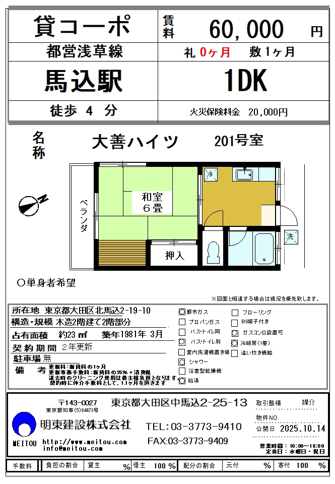 馬込駅徒歩4分だから、毎日の通勤通学がラク。また閑静な住宅街の住戸で、 おすすめの角部屋、漏れ聞こえる生活音に挟まれることなく快適。 ちなみにそれぞれゆったり使えるバスとトイレが別々の住居です。 住まいとお金は最初が肝心!礼金0円。 |