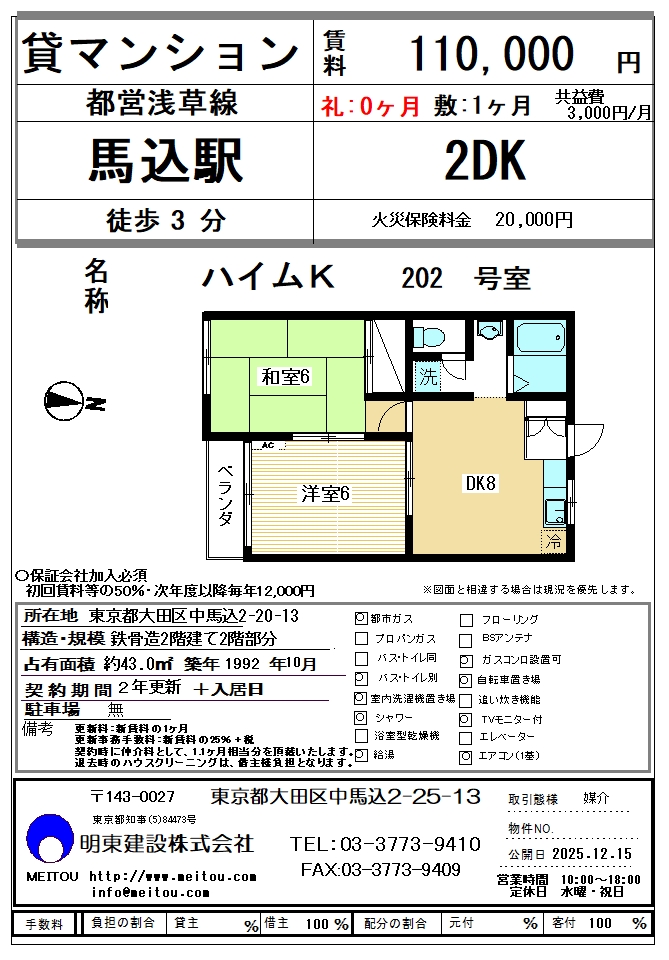アクセスのよい馬込駅徒歩3分立地の物件、更駐輪場付だから、自転車を使った買い物も 楽になります。また閑静な住宅街立地の物件で、振分型の間取り。 ちなみに陽光に面する南向です。賢くやりくりをされたい方に朗報の、礼金0円。 ご案内いたしますのでお気軽にご連絡ください。 |