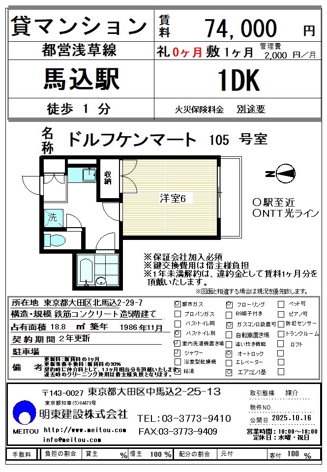 礼金0円。南向の住居、更にSOHO派や在宅勤務時には欠かせない光ファイバー、 回線サクサク、快適なインターネット。また馬込駅徒歩1分ロケーションで、 その上セキュリティ面では欠かせないオートロック仕様、ちなみにシューズボックス付です。 実際の空間をご自身で体感ください。 |